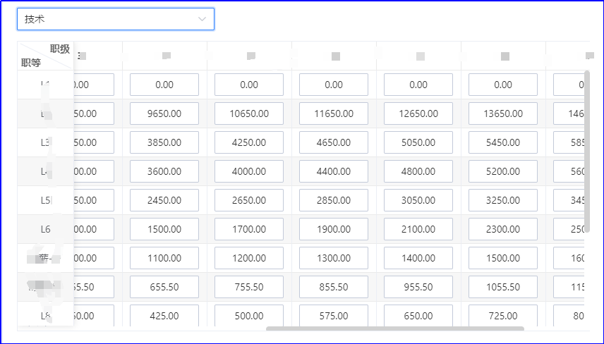 該界面嵌入了職位等級與薪資對照表,為調薪發起人員提供參考。同時,允許對0職級工資進行修改,供審核人員進行對比查看。