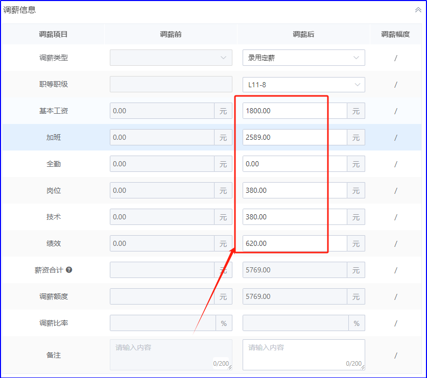 1、新入職員工薪酬調整:新入職員工可能存在部分薪酬浮動,不在既定的薪酬體系內。此時,系統需支持對這部分薪酬進行靈活調整,同時確保標準職等職級部分不受影響。