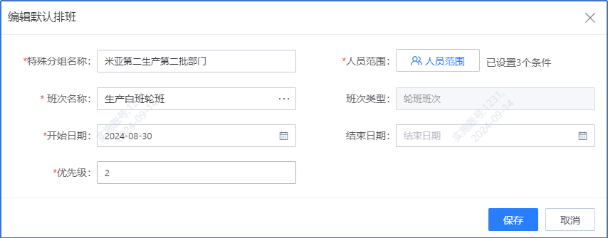3、特殊默認排班:針對同部門內不同人群模式,提供特殊默認排班功能。通過多維度設定人員范圍,應用輪班班次,按開始日期自動輪換。優先級高于部門默認排班,更加靈活應對各種場景。